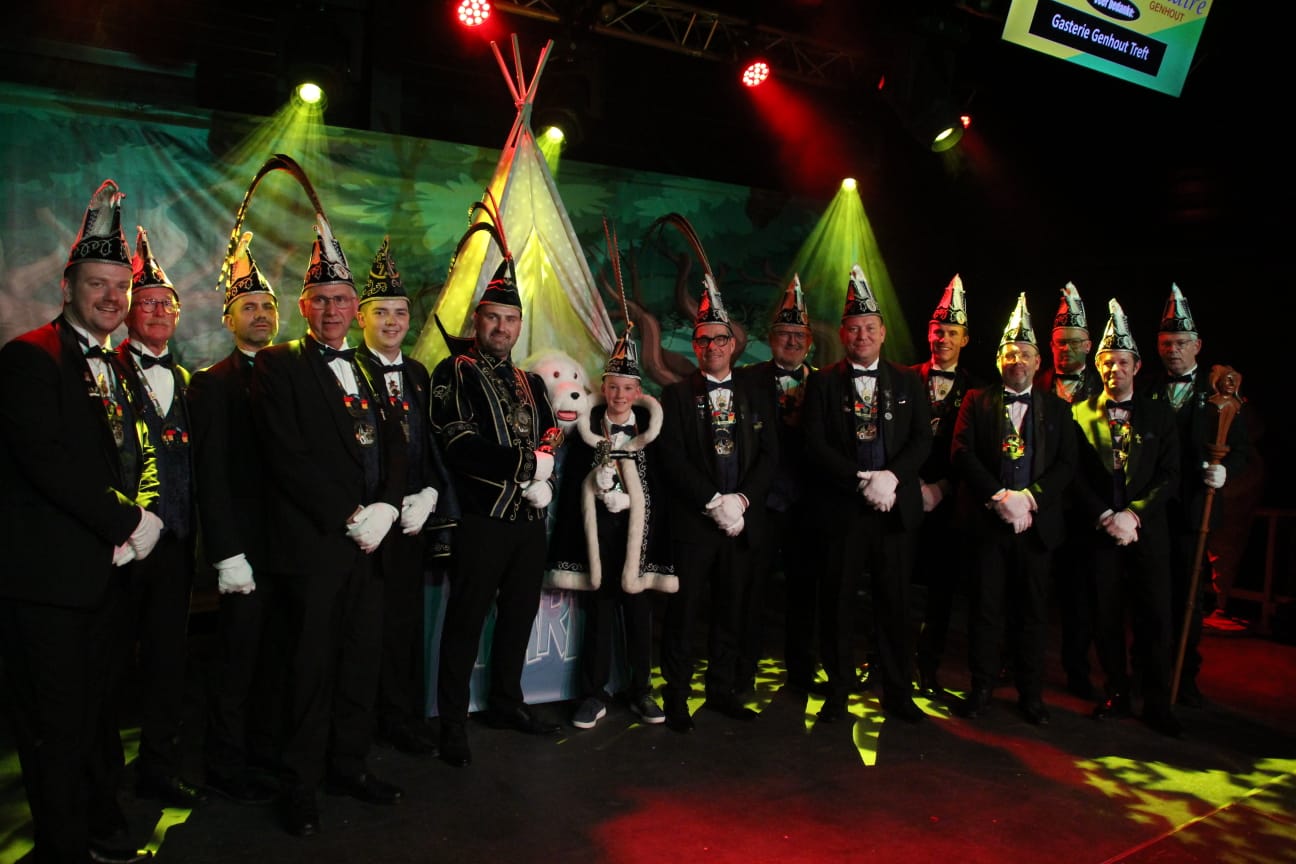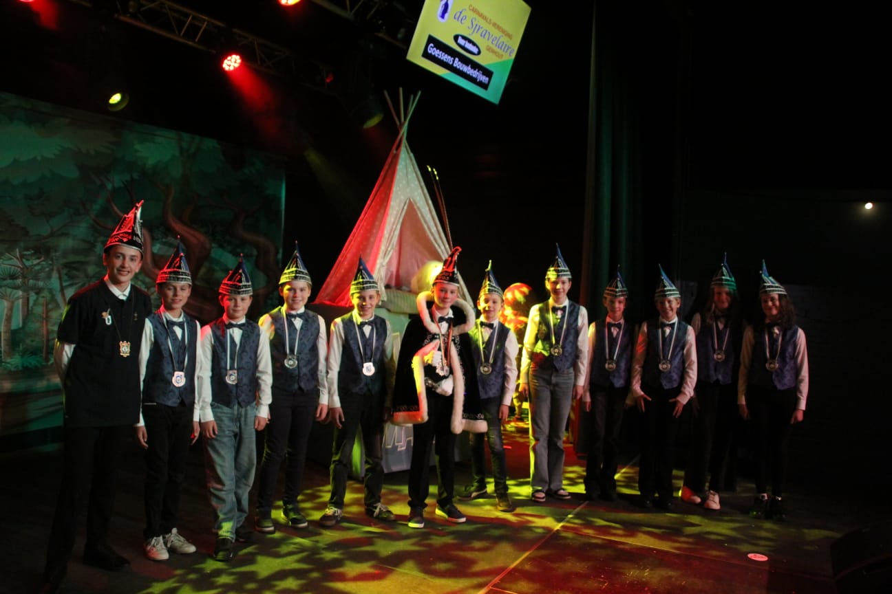 Tijdens weer een geweldige zitting gemaakt door de jeugdcommissie waren we dit jaar te gast bij Samson en Marie . Na verschillende optredens van Genhoutse artiesten en de welbekende Sjravelsterre werd er na enkele optredens eerst afscheid genomen van Tygo die ook weer op een ludieke manier werden opgenomen in de auwt jeugdprinse-en prinsessen groep.